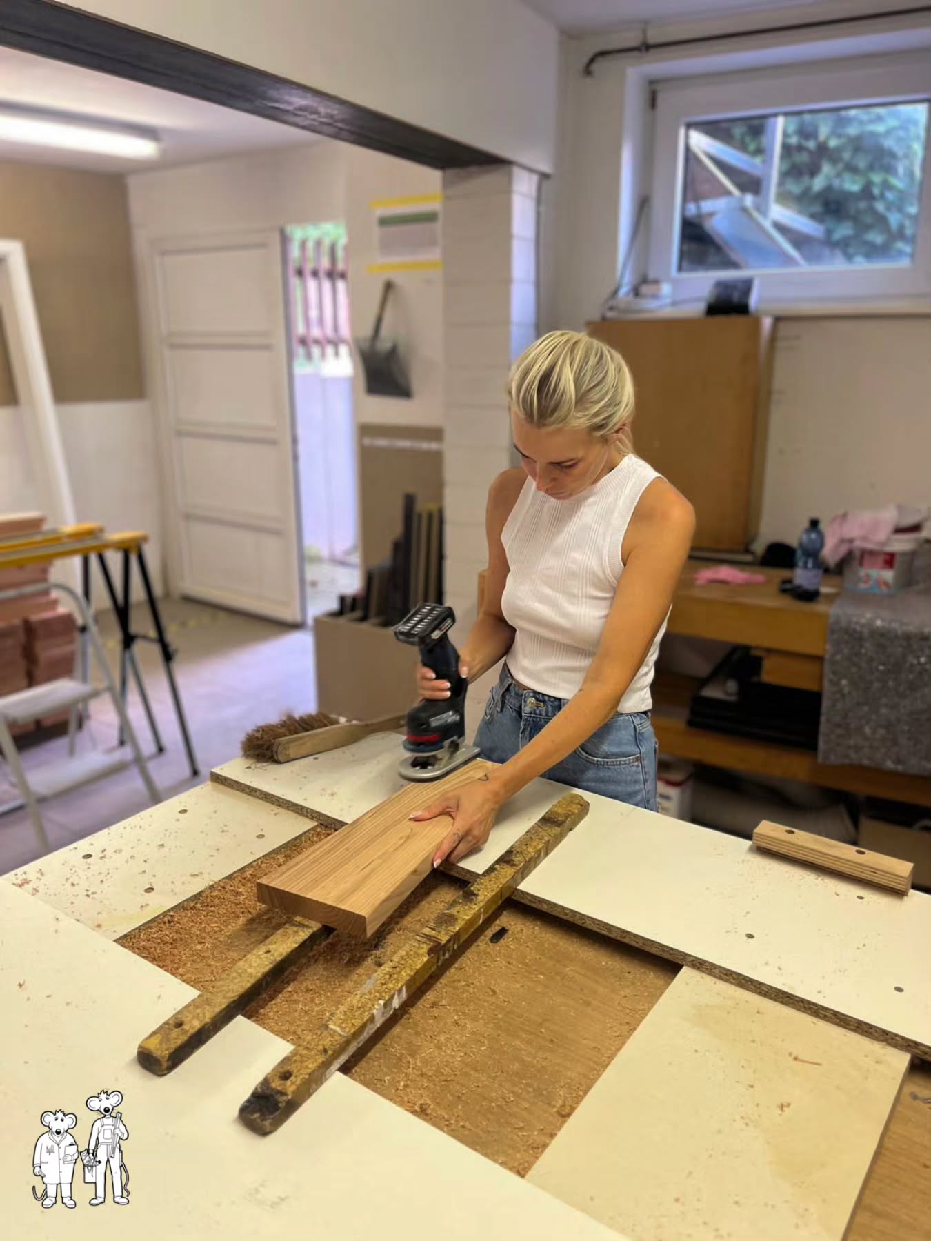 πͺπͺ Alex in Action – wir sagen: schönes Wochenende! #SchreinereiMaus #HandwerkLiebe #TeamMausButton