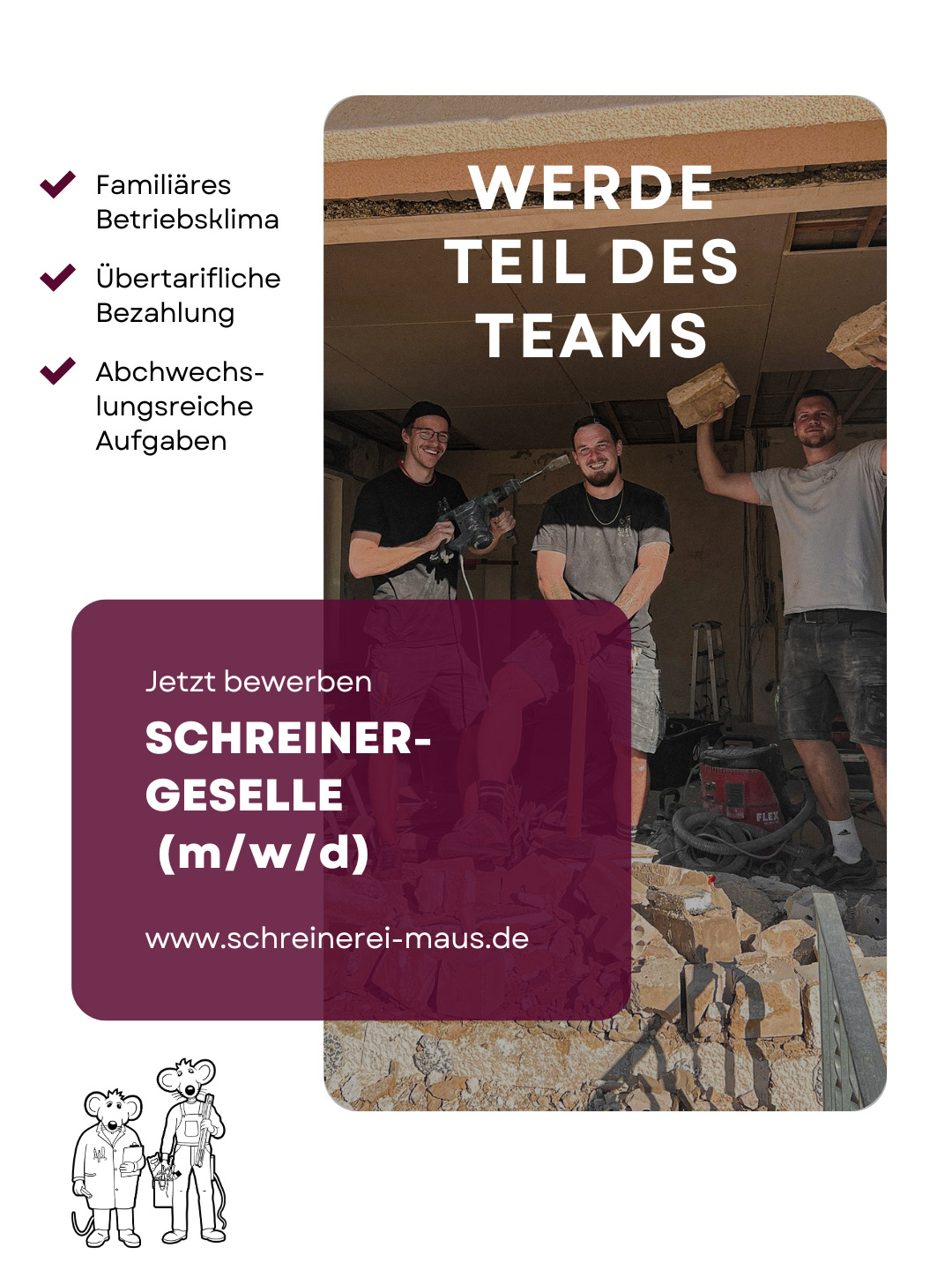 Werde Teil von #TeamMaus und bewirb dich jetzt als Schreiner:in (m/w/d) unter